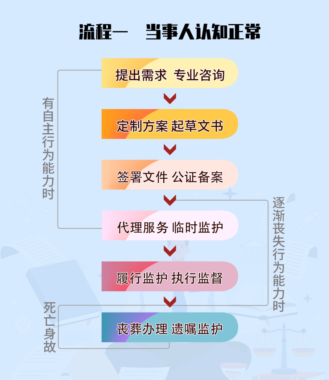 当你老了,膝下无子女 也不想总是麻烦其他亲戚 谁来照料你的日常生活? 当你病了,子女远在国外 手术又迫在眉睫 谁能在手术单上签字? 当你老了,孩子却身患疾病 想到总有一天要离开他 谁来替你继续守护他? …… 面对这样揪心的难题该怎么办? 若您身边有这样的老人 又该怎么提供切实的帮助? 答案就在“椿萱计划” 什么是“椿萱计划”? 这是闵行区在全国首创的老年人社会监护赋能项目。专门为各类没有监护人,或者监护人因客观条件无法履行责任的老年群体(社会孤老、失独家庭、独生子女伤残家庭、子女在海外的家庭等)提供咨询对接、人身照护、医疗救治、财产保护、签约公证等服务。 什么是意定监护? 意定监护是一个具有完全民事行为能力的成年人为自己或为自己应当监护的近亲属(如未成年子女),自主选择和预先指定信任的人或组织作为监护人,在将来自己能力不济时,按照预先确认的意愿照管自己或自己的近亲属。 【法律依据】民法典第33条:具有完全民事行为能力的成年人,可以与其近亲属、其他愿意担任监护人的个人或者组织事先协商,以书面形式确定自己的监护人,在自己丧失或者部分丧失民事行为能力时,由该监护人履行监护职责。 意定监护人如何挑选? 1.从自己的近亲属中选择监护人,如:子女、兄弟姐妹、侄甥、远亲等。 2.从自己的社交圈中选择监护人,如:同事、朋友、邻居、志愿者等。 3.你所信任的其他非近亲属。 4.专业可信的社会组织,具有相关资质和良好的社会口碑。 意定监护人的职责是什么? 意定监护人的职责是在被监护人能力不济或失能失智时,按照被监护人的意愿,代理被监护人实施民事法律行为,主要包括: 1.人身照管:租房、入住养老院、请护工等 2.财产管理:存款领取、房屋的出售等 3.就医协助:就医治疗、放弃医疗救治等 4.身后安排:遗体捐献、骨灰安葬等 5.权益申请协助:政策补贴申请、证件申领等 6.其他相关意愿执行 预先设立意定监护有什么好处? 1.可以有充分时间选择信任的人,并周全表达意愿,在将来按自己的意愿照管自己/家人。 2.保证意定监护人的监护顺位优于法定监护人。 3.免除监护人的顾虑,让好心人没有法律负担。 如何办理意定监护? 想进一步了解社会监护相关服务 该如何联系? 您可咨询居委会老龄干部,或直接联系上海闵行区尽善社会监护服务中心。 咨询热线 400-029-9930 个案服务直线 19921273878(陈老师) 总部办公地址 上海市闵行区七莘路750号308室 (上海市闵行区社会事务综合管理大楼) 新虹街道咨询接待点 新虹社区综合为老服务中心 (天山西路4358弄99号204室 “椿萱堂”)