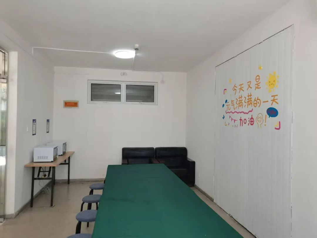 物业主管卞长丽说;“宿舍区域的保洁人员此前的休息室大多都是小隔间。除了五期公寓区域,学校教学楼等其他区域也正在启动休息室,为其他保洁人员安排合适他们吃饭的地方,同时提供饭后休息的场所。”