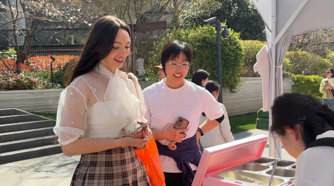 记者在现场看到,虽还未到盛花期(目前樱花已初绽,预计下周进入盛花期),但市集仍吸引了不少市民游客前来。“旁边是苏州河,这里有樱花大道,感觉非常好。我会年年来,天天来!”家住周边的市民朱阿姨热情地说道。来自巴西的Ana则表示,自己在社交平台上刷到了这里,给自己的旅途增添了趣味。