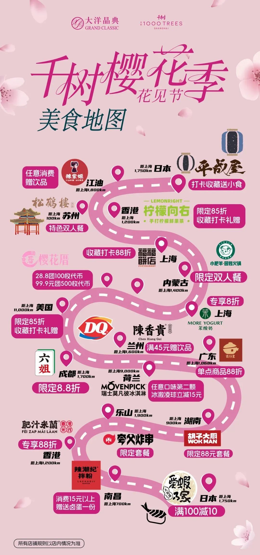 本次樱花季期间,天安千树场内的剑持屋还将推出主题便当,粤玖点、胡子大厨等十余餐饮品牌推出专属特惠。千树樱花季游客中心(L层中庭旁,1000 Trees Shanghai)将同步发售限定联名周边,千树会员更享打卡互动赠礼、消费满赠等多重礼遇。千树x BYMB特别推出城市疗愈计划,樱花瑜伽、尊巴热舞、铜锣冥想等课程引领市民在花海中焕活身心。