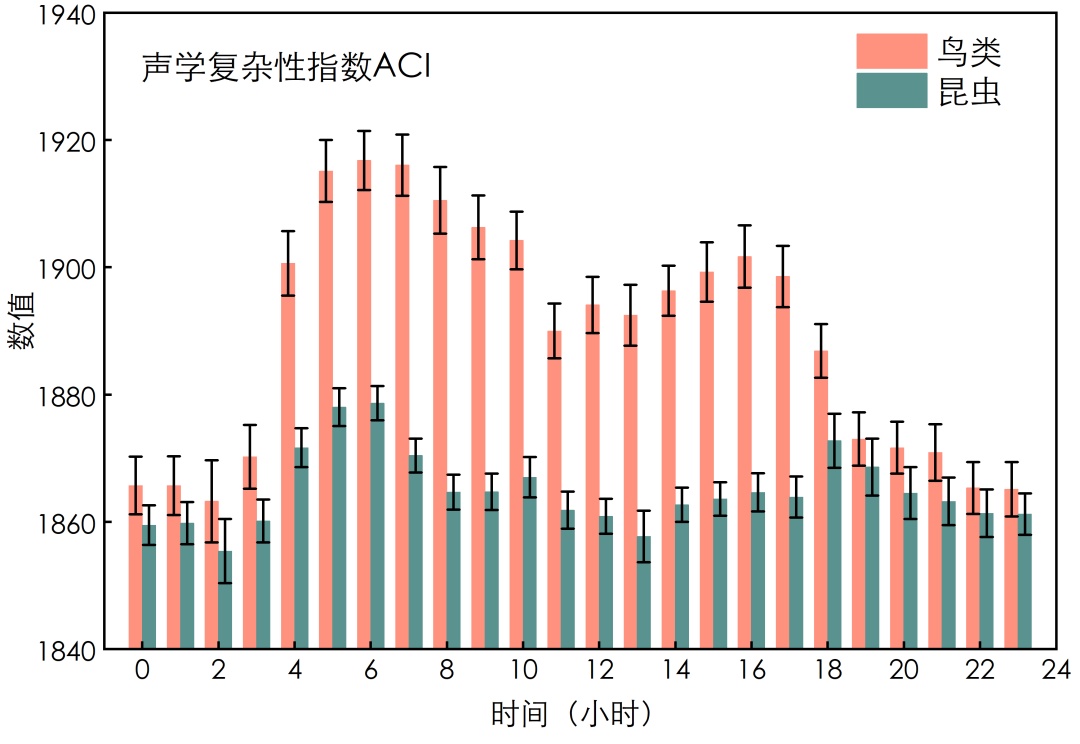 夏季,湿地蛙鸣加入合奏,丰富了声音元素,使得生物声学指数甚至超过了同期的中山公园。