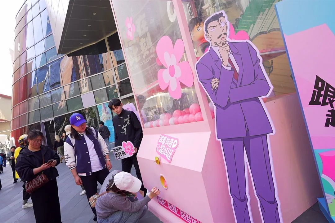 CP静安活动点位被浓郁的粉色浪漫包围,还迎来《名侦探柯南》中的最甜CP柯南、小兰。不少路过的市民纷纷停下脚步,拿起手机参与现场打卡活动和线上抽奖,有机会获得“超好逛X名侦探柯南”联名文创好物。
