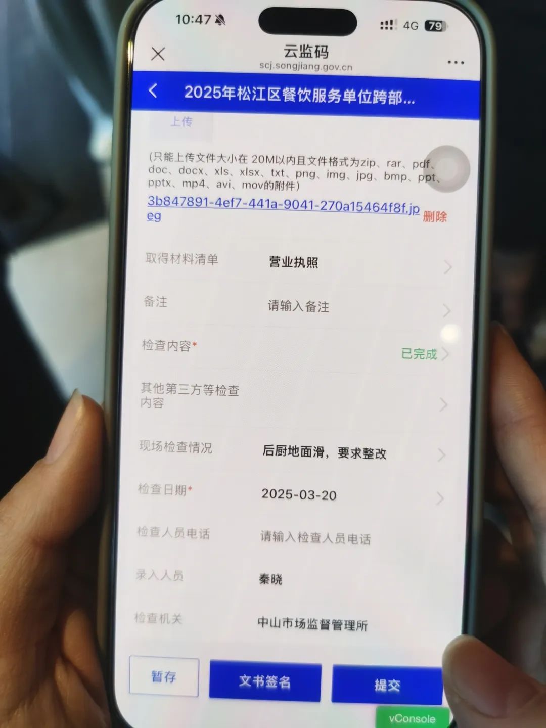 检查过程中,执法人员现场拍照后直接上传“云监码”系统,检查结果和整改意见一目了然,并请企业相关负责人现场确认后在线签字。