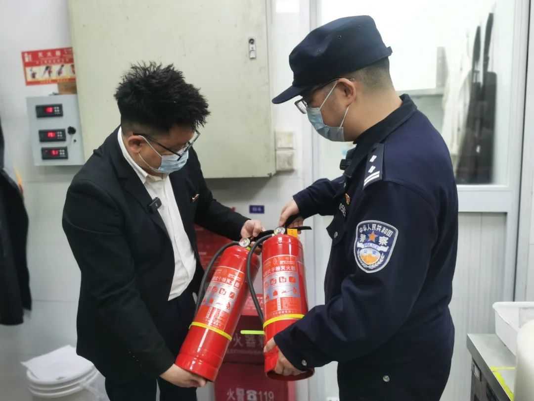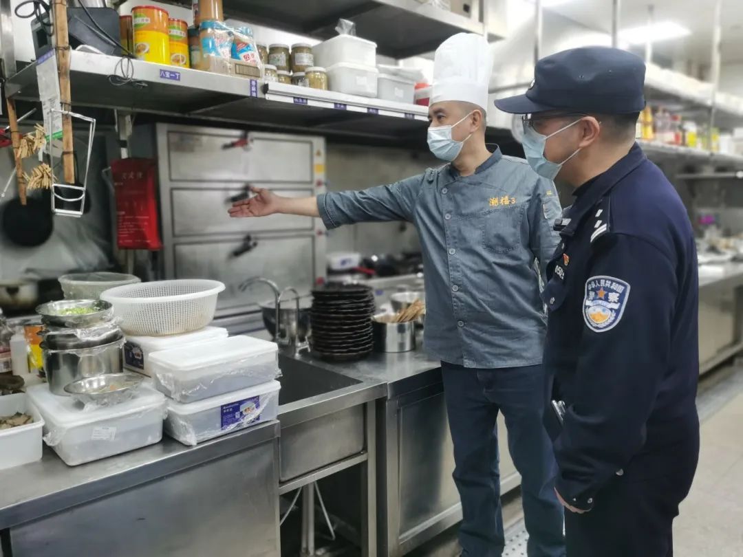 上午9时半,执法人员来到上海潮膳餐饮管理有限公司,亮出执法证和云监码。随后,按照跨部门综合监管工作方案,市场监管部门对餐饮单位食品安全、履行主体责任、控烟和一次性餐具使用情况进行检查;公安部门对餐饮单位的灭火器、消防栓、火灾报警系统是否齐全且功能正常进行检查;城管部门对餐厨垃圾和废弃油脂收运情况、油烟净化设备清洗记录等进行检查。