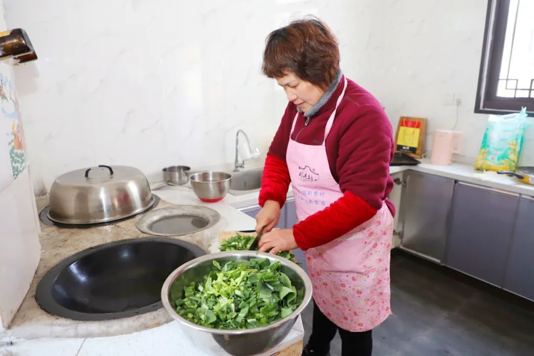 等待菜饭的间隙,朱阿姨也没有闲着,处理早上采摘的马兰头。将马兰头焯水后凉拌,淋上几滴麻油,便是春日最清透的开场。