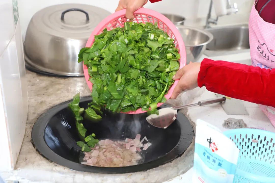 菜心、马兰头、草头……春菜争先恐后冒头,此时采摘最是鲜嫩。近日,张堰镇旧港村的朱阿姨就围着这些春菜忙个不停。一早,她就在自家菜地里掐菜心,准备做一锅灶头菜饭。朱阿姨表示,金山灶头菜饭的灵魂,在于“就地取材,应时而食”。