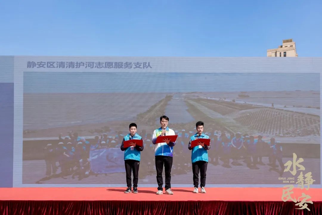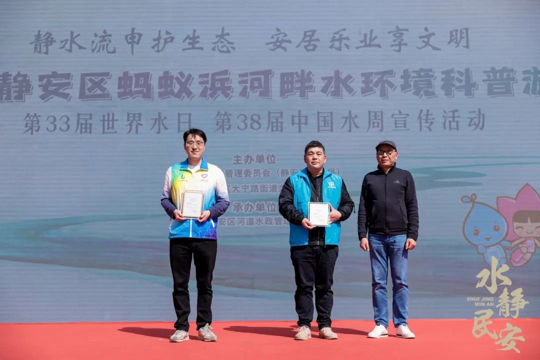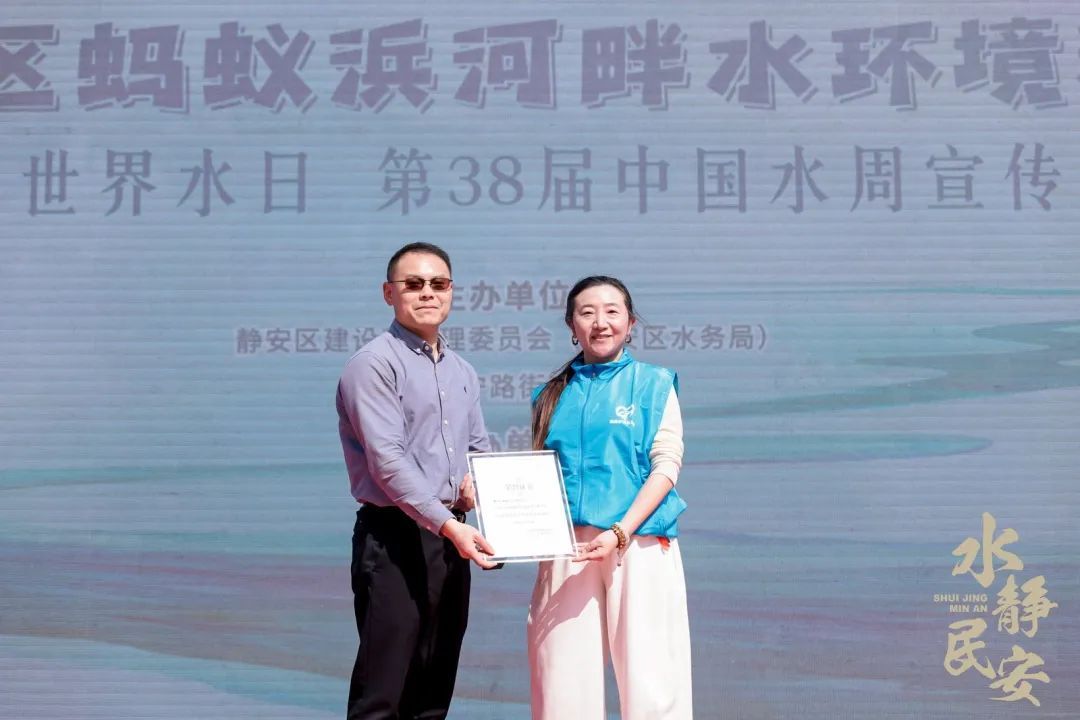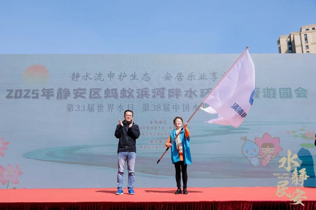 活动为获评2024年上海市优秀护河志愿服务组织、2024年上海市优秀护河志愿者的团队和个人颁发荣誉证书。3名清清护河志愿者代表分享志愿服务体会和感想。来自金茂府的居民自发成立金茂府清清护河志愿服务队,活动为“清清护河”新成员授旗。