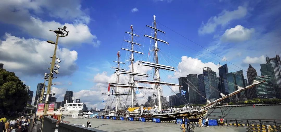荷兰仿古帆船“阿姆斯特丹”号停靠北外滩(方忠麟 拍摄)