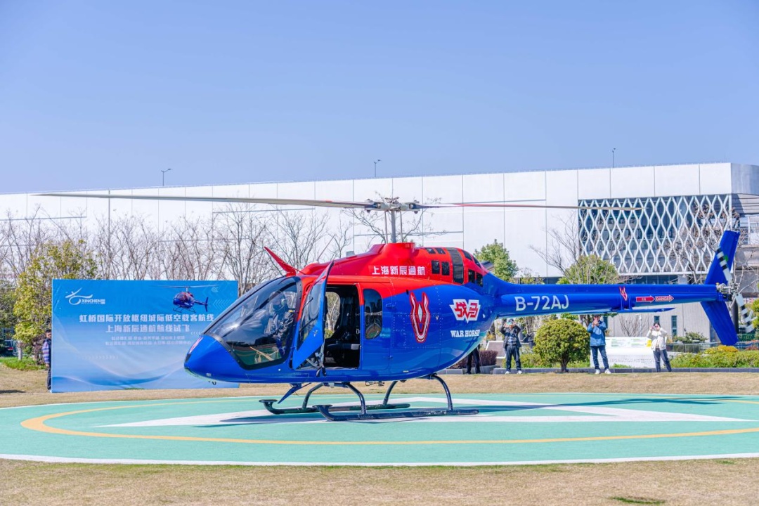在虹桥国际开放枢纽启动建设四周年之际,3月18日,两架直升机分别在虹桥国际中央商务区起飞,执行虹桥国际开放枢纽城际载客低空飞行。这是长三角城际载客航线网络化、多航线运行的首飞突破。