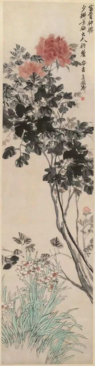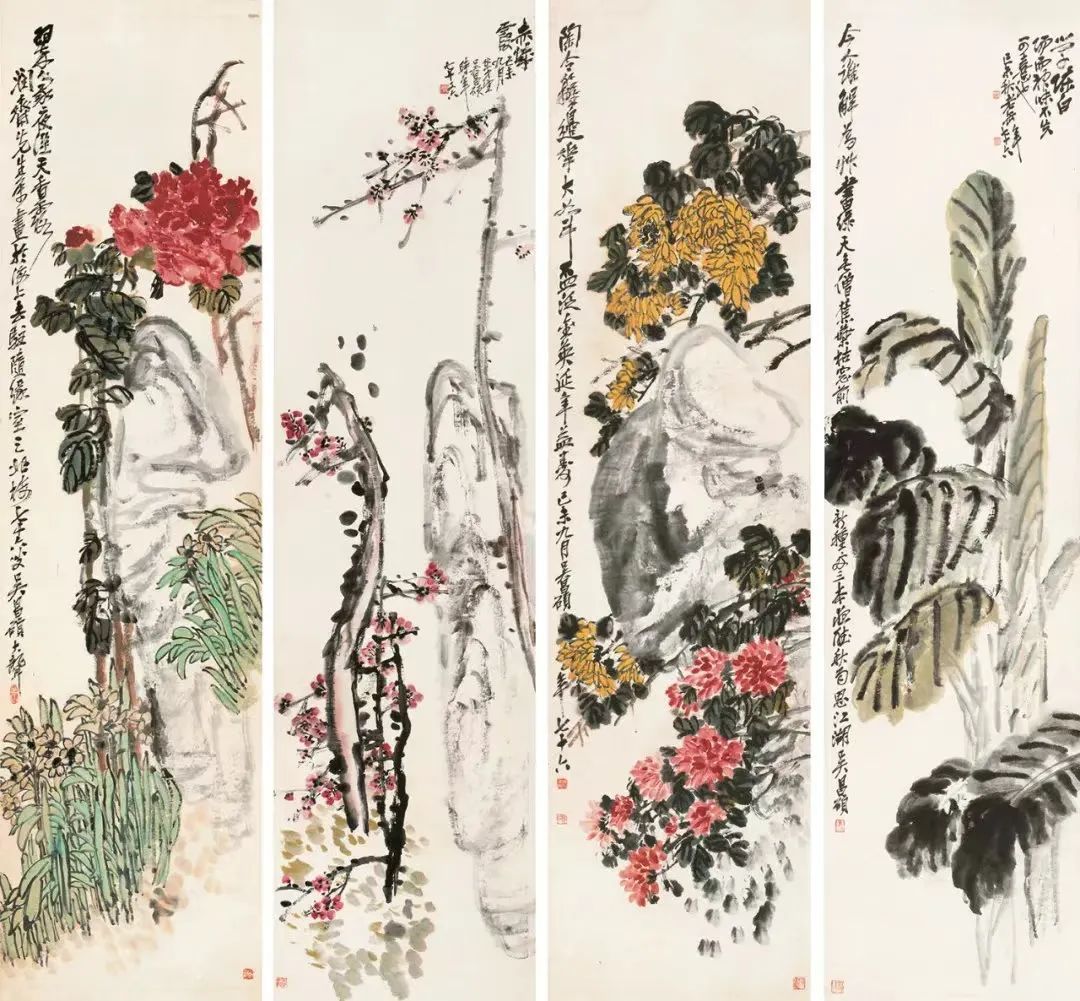 随着吴昌硕入住吉庆里,他晚年生活趋于稳定安逸。平时有王一亭、赵云壑、倪墨耕等人侍奉左右,诸多照顾,顺风顺水。正是在这种情况下,吴昌硕深入挖掘江南文化的底蕴,开拓海派文化的资源,大胆实现了暮年变法。他的书法取意于石鼓钟鼎与汉碑晋帖,晚年笔力更加古朴苍莽、老辣高古、大气磅礴。他的绘画在变法后笔触更加老健郁勃,中西兼融、敷色古艳、气韵生动,并将篆隶和狂草笔意融入画中,独开五百年大写意的新生面,具有鲜明的时代精神和鲜活的市民情趣。他的篆刻吉金乐石、老而弥坚,奇崛恣肆、豪放雄浑,开创了影响深远的“缶门派”。吴昌硕在从艺中所突出的金石精神,就是让金石精神突破艺术的范畴,推进到一个时代的高度,由此演绎成一种自强不息的民族精神。