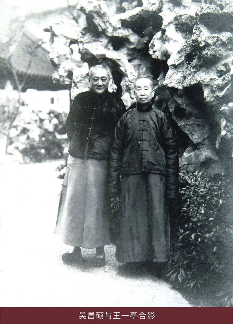 吴昌硕在吉庆里缶庐的一楼为会客室,二楼为画室,三楼为卧室。大门上贴有对联:“南华秋水,北苑春山。”凸显了吴昌硕在精神上是仰慕庄子(秋水),在艺术上是取法董源(春山)。门外左墙上还贴有“安吉吴”,右墙则一大字“聋”。自吴昌硕居吉庆里后,王一亭亦成了缶庐的常客,时常相伴于老人左右,关系日见亲密。书画合作,诗文唱和,乃至吴昌硕的许多家事都交王一亭办理。尽管吴昌硕入住的吉庆里也算不上豪宅华屋,但毕竟有了宽敞而稳定的生活、工作场所,有了可与其身份亦算相符的画斋雅室。他在此挥毫泼彩、奏刀镌石,或吟诗作文、聚朋会友,与陈宝琛、陈三立、沈曾植、曾熙、李瑞清、朱祖谋、张謇、张元济、康有为等结社契盟,当时的吉庆里可谓是大师相聚、名人荟萃,成为海派书画最高端的艺术沙龙和上海的一张文化名片。