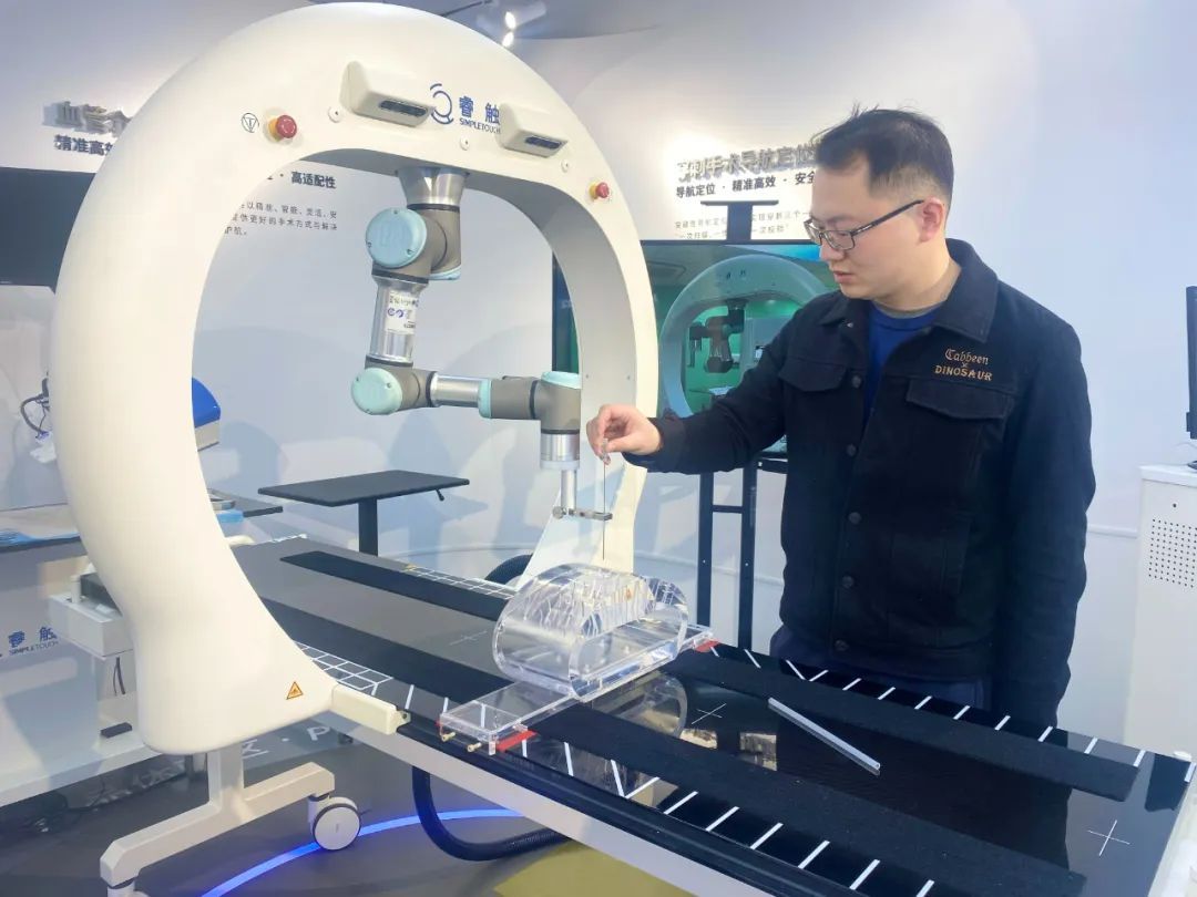 刘剑介绍,在CT和机器人之外,传统需借助第三方的传感器,相当于用“第三只眼睛”来把两种设备的坐标结合在一起,导致术前的准备时间较长,还存在一定的精度丢失。而睿触科技自研的CT引导下肺部穿刺手术机器人,在全球首创“CT影像和智能传感一体化”技术,能把CT的数据100%利用起来,精度更高、过程更简单高效。同时,没有以前比较繁琐的匹配过程,医生上手起来也更快。另外因为传感器是自研自产,相比以往外购的第三方传感器,成本也大为降低。