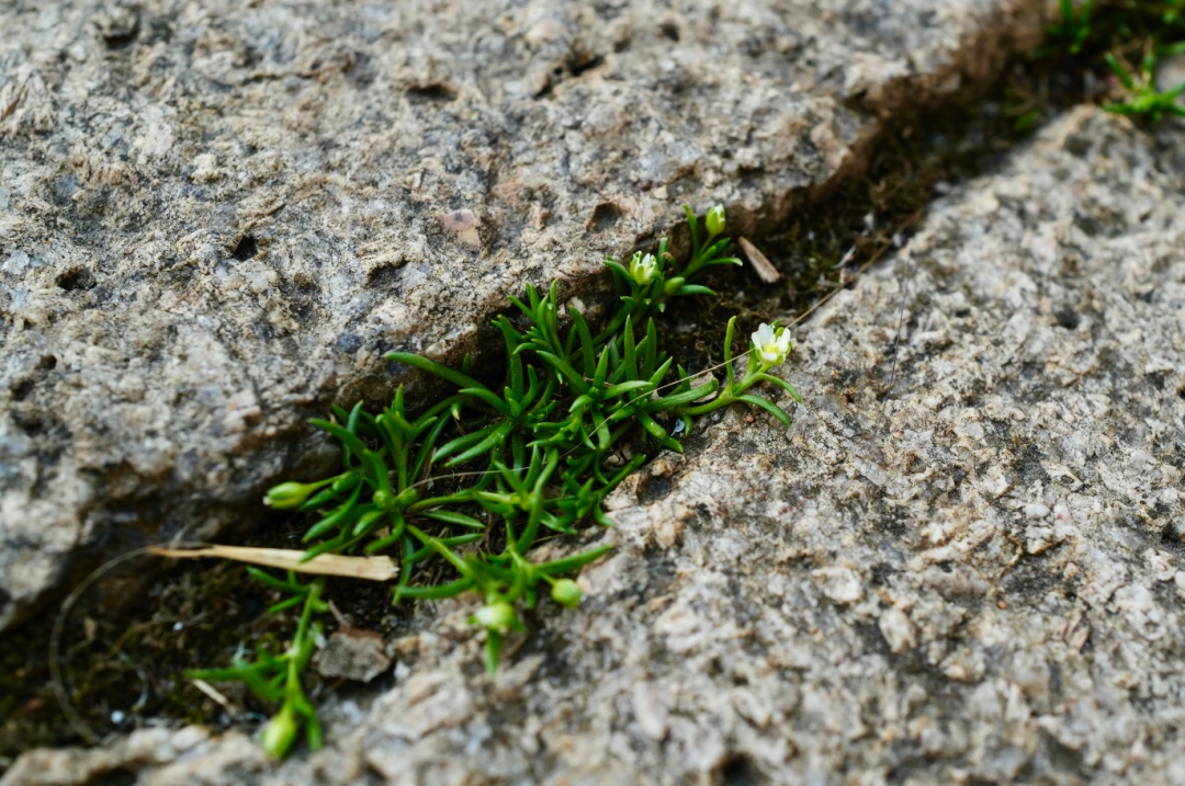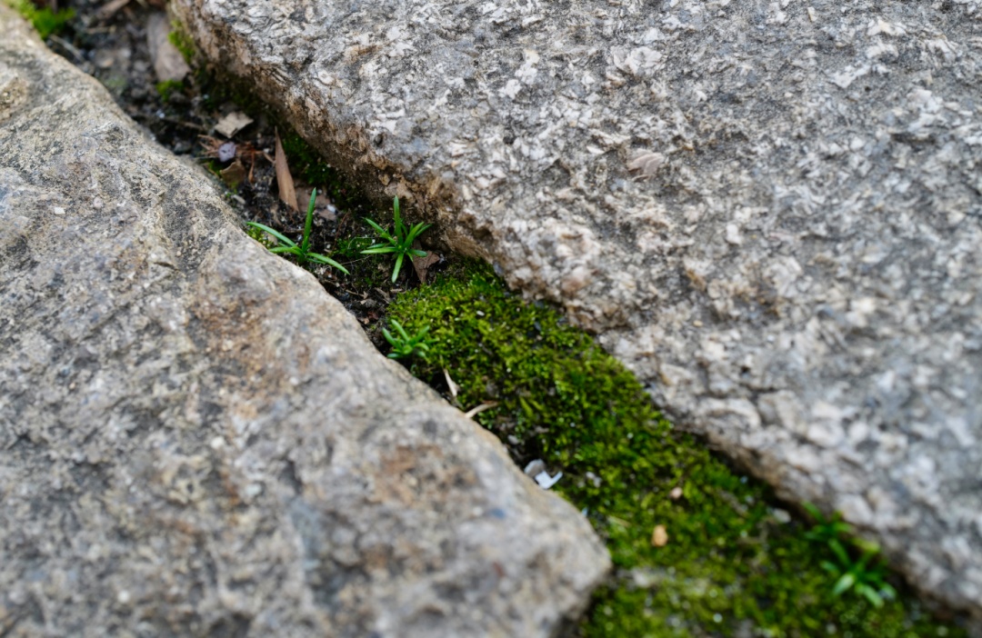 前两周连绵的雨水,待云散日开后,路上的石板缝隙中多了不少绿油油的苔藓。蓝天白云下,春花灿烂很惹人爱,但是脚下的微观“小森林”虽然不起眼,也自有一派生机盎然。