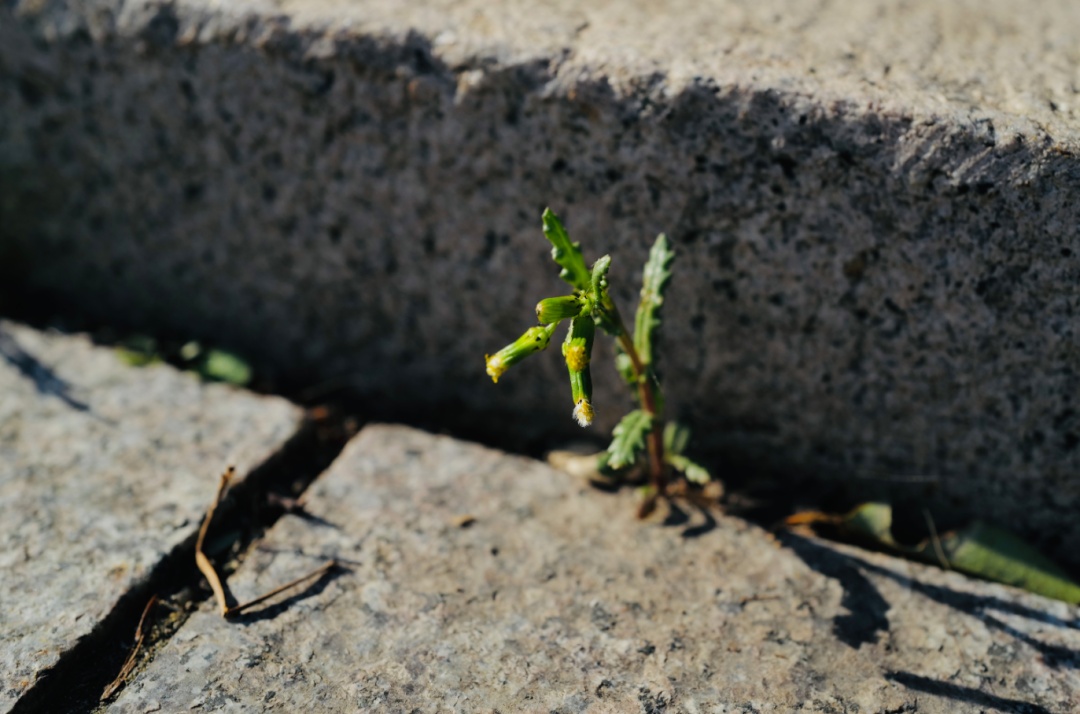 行走在复兴公园,低头仔细端详石板之间。这狭小的空间里早已长满了各种各样的野草野花。定睛细看,缝隙中的小世界可不止苔藓一种。