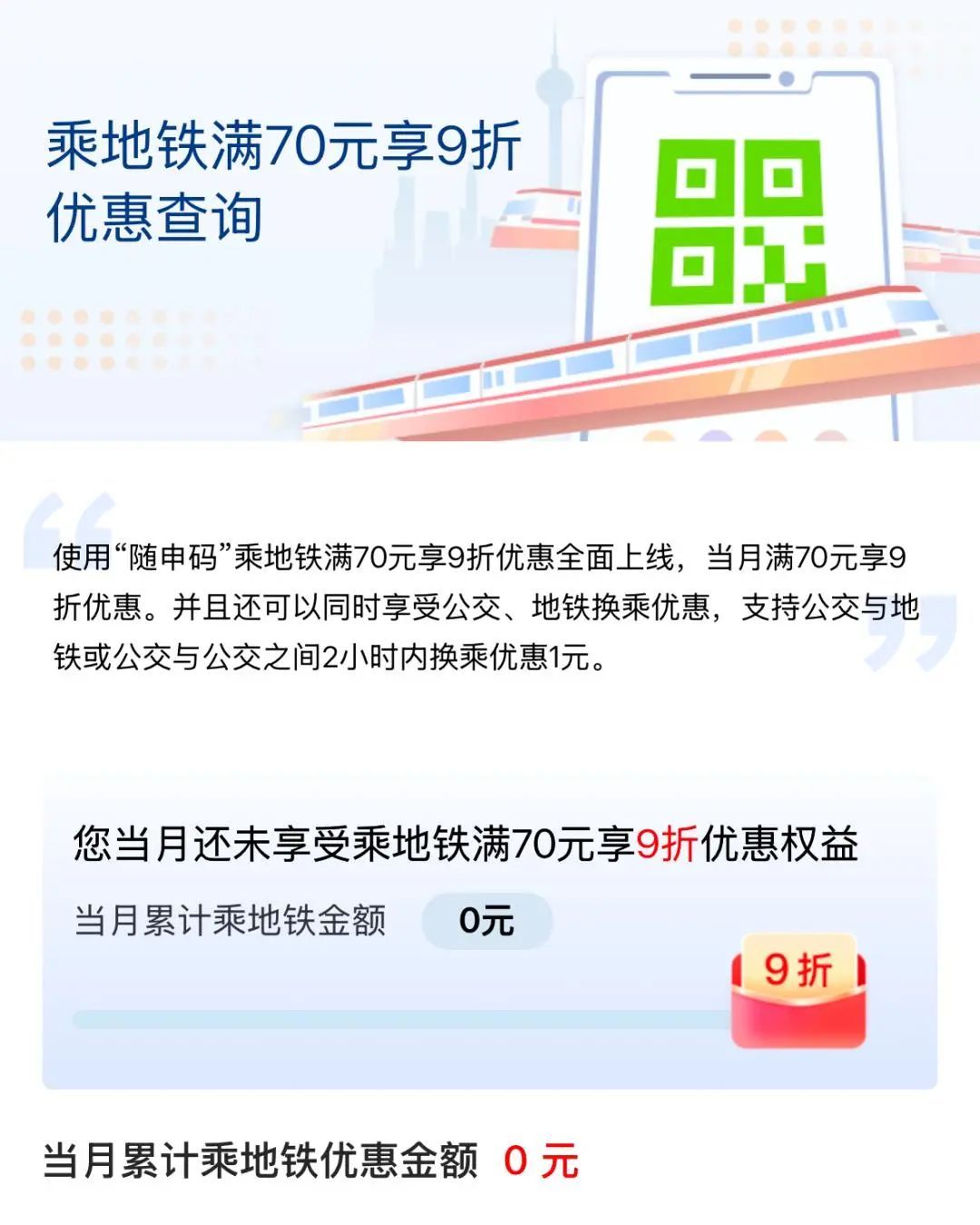 只需一次性绑定,您便可以轻松扫码乘车,省去排队购票的麻烦,并且还能享受便捷的换乘优惠!