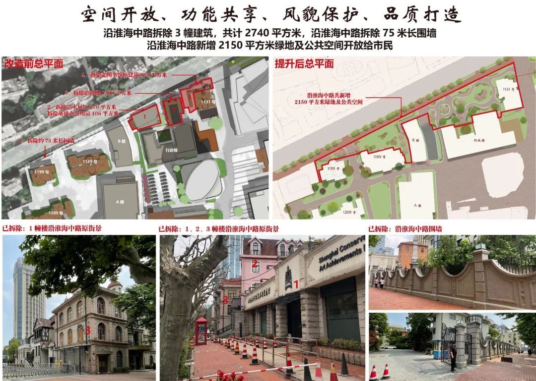自2022年起,通过拆除违法建筑、破除围墙,释放出约3300平方米的绿地面积,并将6栋历史保护建筑修缮完成对外开放,包括上音歌剧院、音乐城堡、美育楼以及上海城市音乐会客厅等,让市民和游客能够更加亲近这座城市的音乐与历史文化。