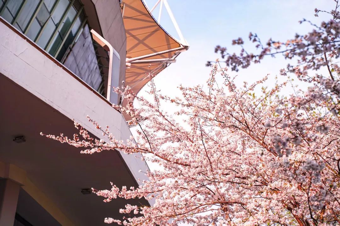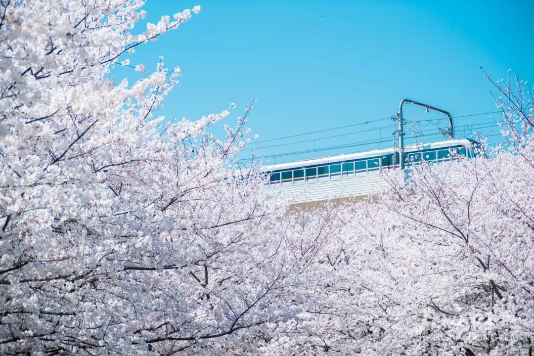 1. 地铁8号线虹口足球场站站外樱花树成林,正是赏樱时节。一起看列车穿过樱花的瞬间,感受“魔都最美地铁站”的春日氛围。