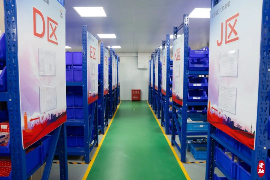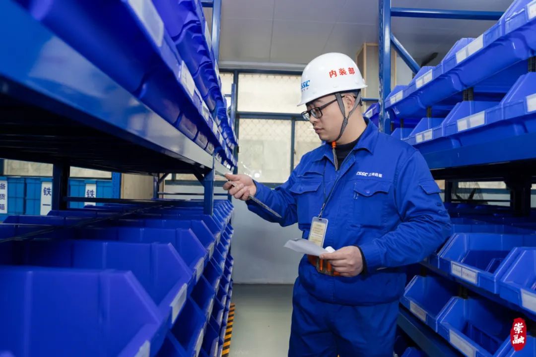 张师傅所说的生产“驿站”,是江南造船内装部集物资供应、技术支持、员工服务于一体的综合性保障站。去年年底,生产保障站完成升级,通过智能化仓储管理系统、精准规划区域,帮助员工高效地完成生产任务。