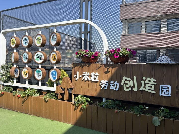 “其实,最初打开楼顶空间是出于科学课的课程需要,但很快就发现,能做的远不止科学观察。”力学小学德育处副主任宋金奇介绍,去年秋季学期,学校启用了闲置的楼顶,加固加高围栏,搬来花箱打造“小米粒劳动创造园”,“接着把这片空间交给三年级学生,因为他们语文课本里,有一个单元讲的都是‘我的植物朋友’。”