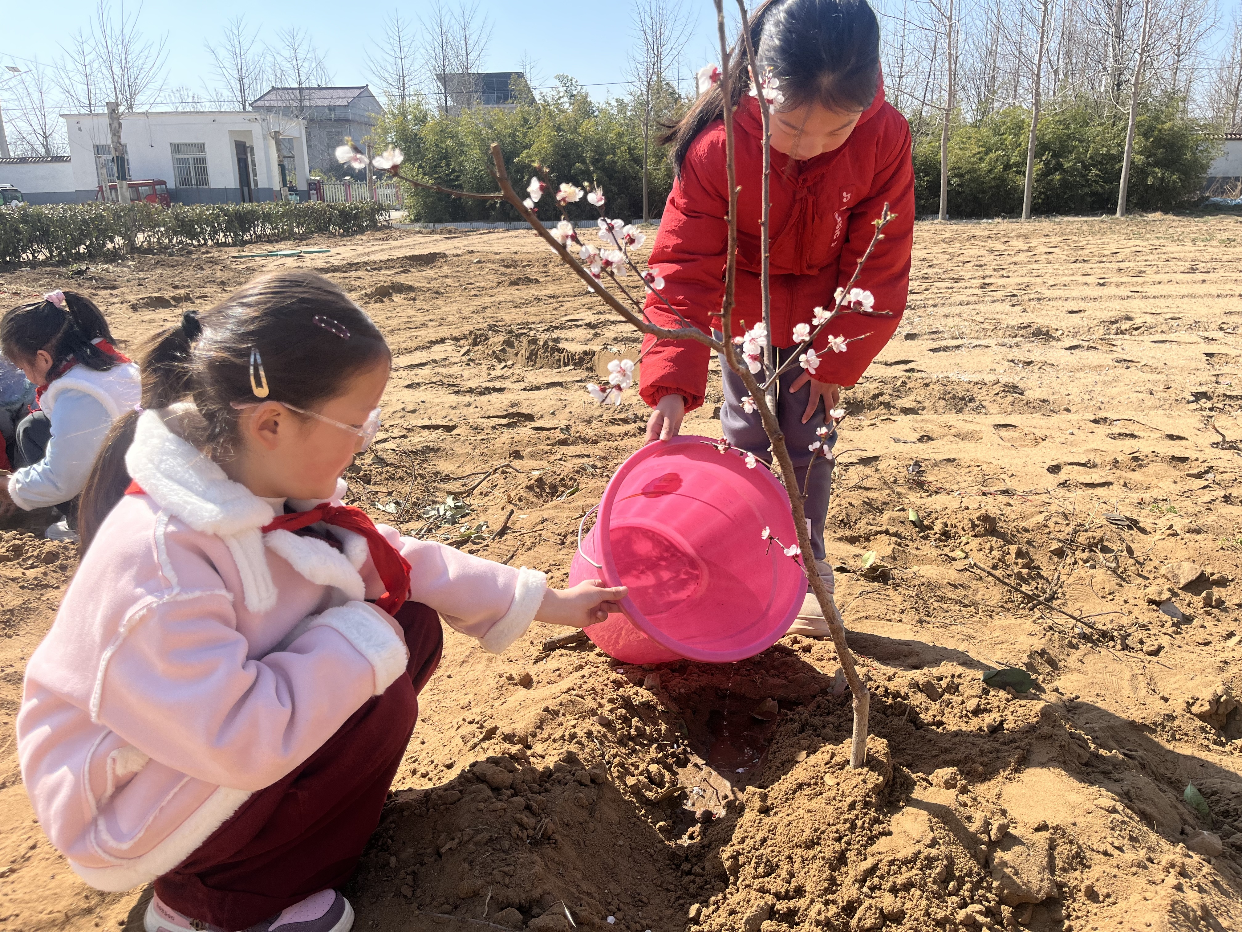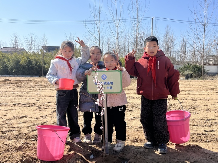今年开春,学校师生合力种下了一片果树,有桃树、梨树、苹果树等等。在徐勤充看来,劳动实践拥抱春耕最显著的作用,在于寻找特色,让孩子们更易接受。同时,种树的过程亦有美好的寓意,预示着孩子们与小树共成长。