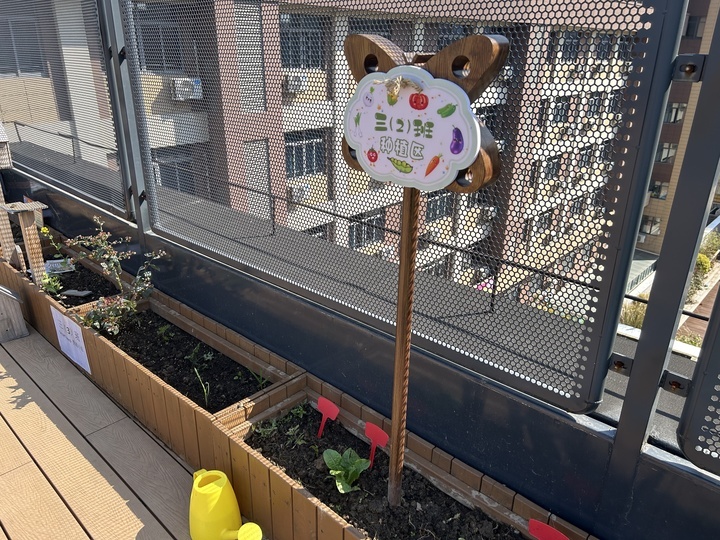 “这里确实就叫‘一米农场’。”韩慧比画着每座花箱的长度,刚好一米。很难想象,老城群楼包围的学校,竟藏着这样一片“天地”。