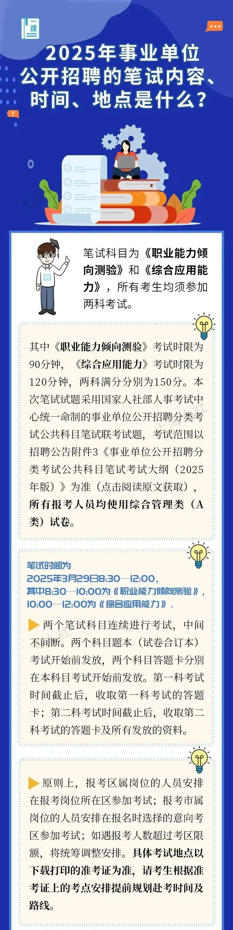 2025年事业单位公开招聘的笔试内容、时间、地点是什么?