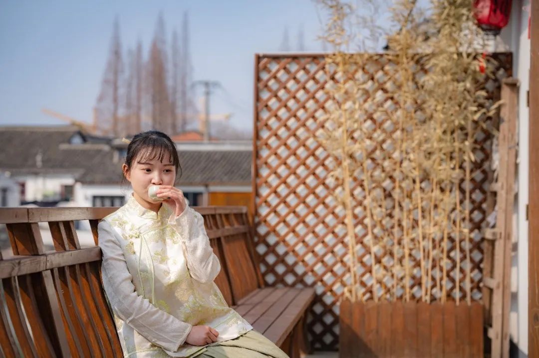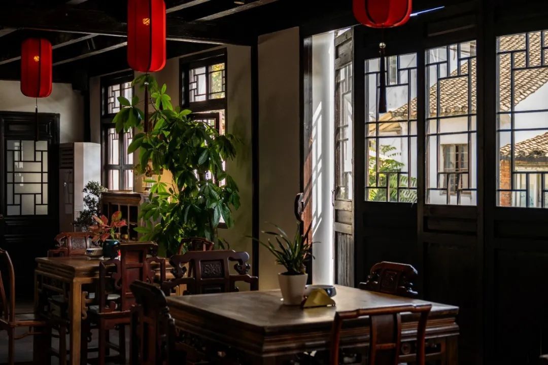 这里汇聚了中国传统文化的诸多美好元素,有茶艺、轻食、文玩、器物、手作等。踏入大门,穿过庭院,时间仿佛也放缓了脚步,变得温柔绵长起来。当你游览古镇时,可以来此稍作小憩,这里临街傍河,与三五好友一起品茶,享受温暖阳光与庭院美景。