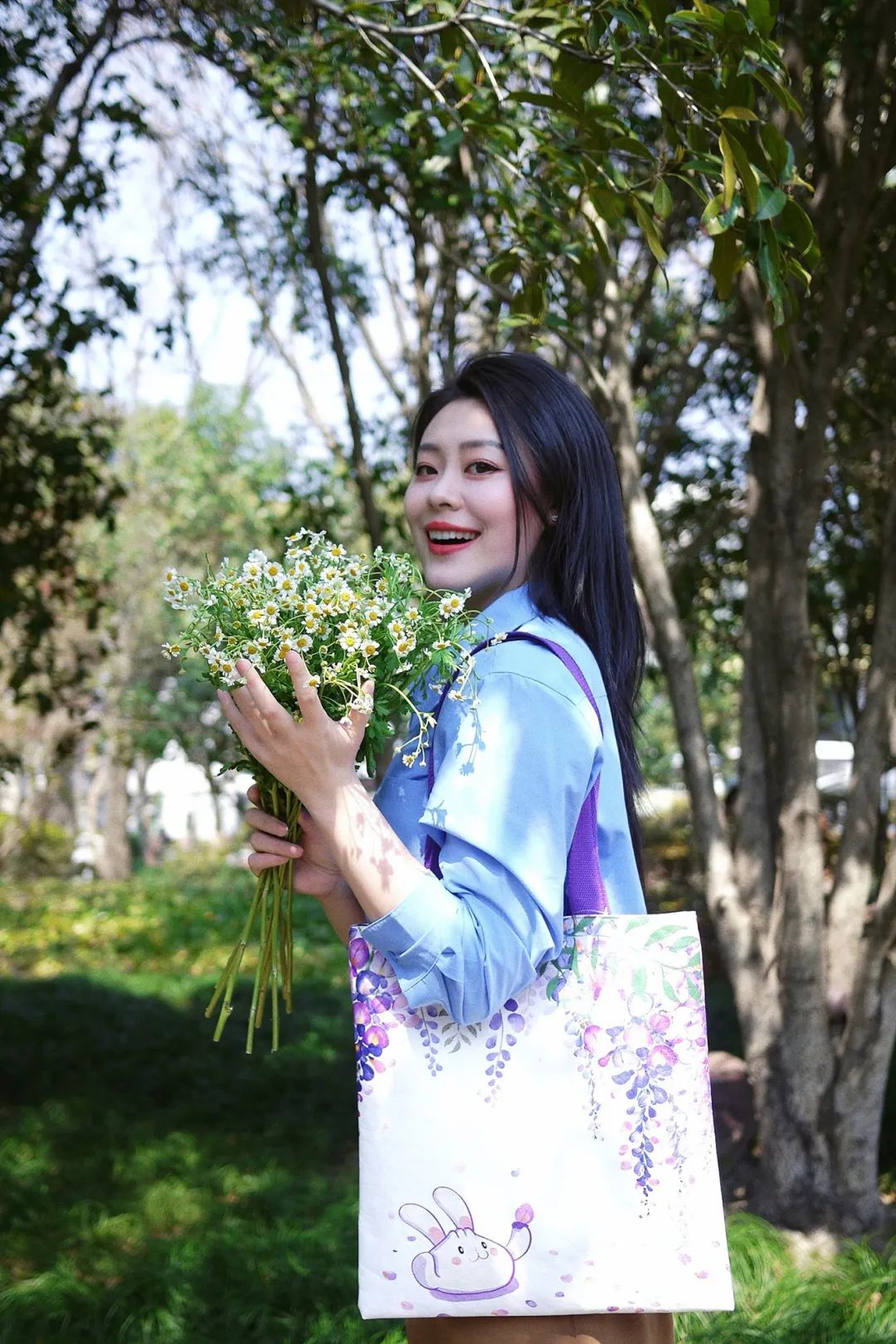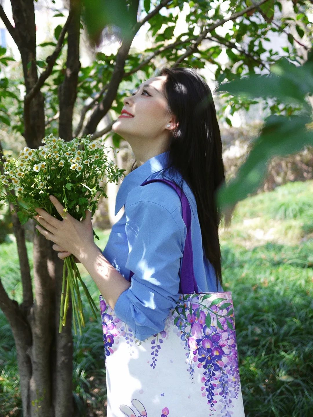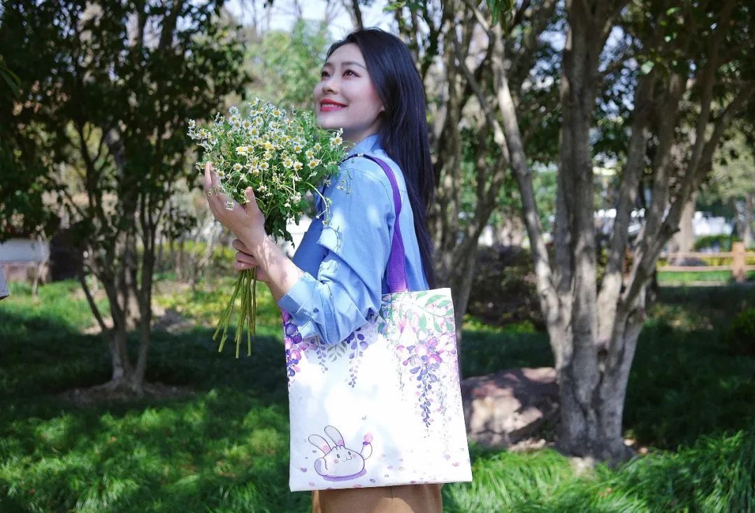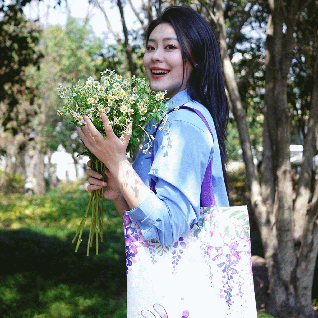 背上这款紫藤环保袋,