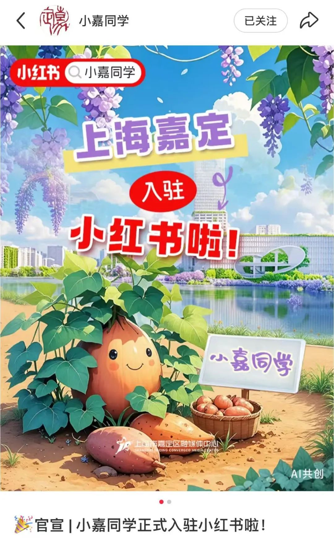 @嘉定的小伙伴们! 小嘉来了~小嘉来了~ 小嘉带着与“上海发布” 联名的紫藤环保袋走来了!