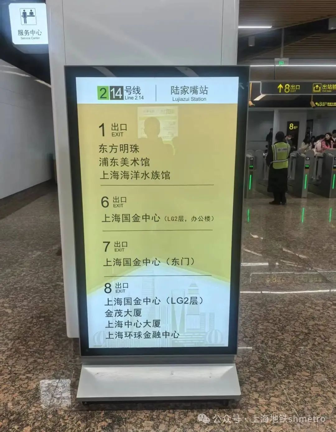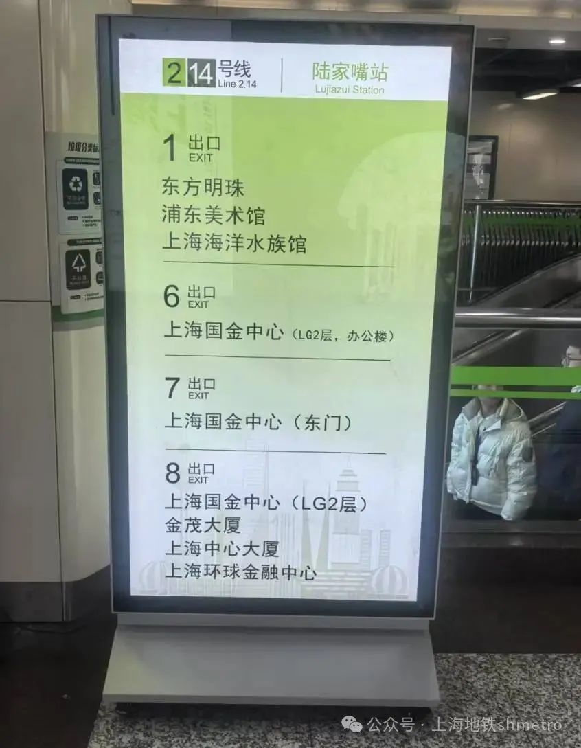 增设重要地标位置灯箱,更直观地引导乘客前往东方明珠、上海国金中心等目的地。