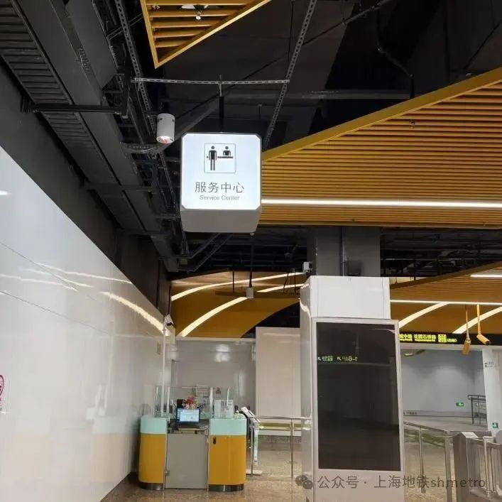新增服务中心、行李寄存柜悬挂导向,四面环绕,方便乘客在不同方向均能发现两处服务设施位置。