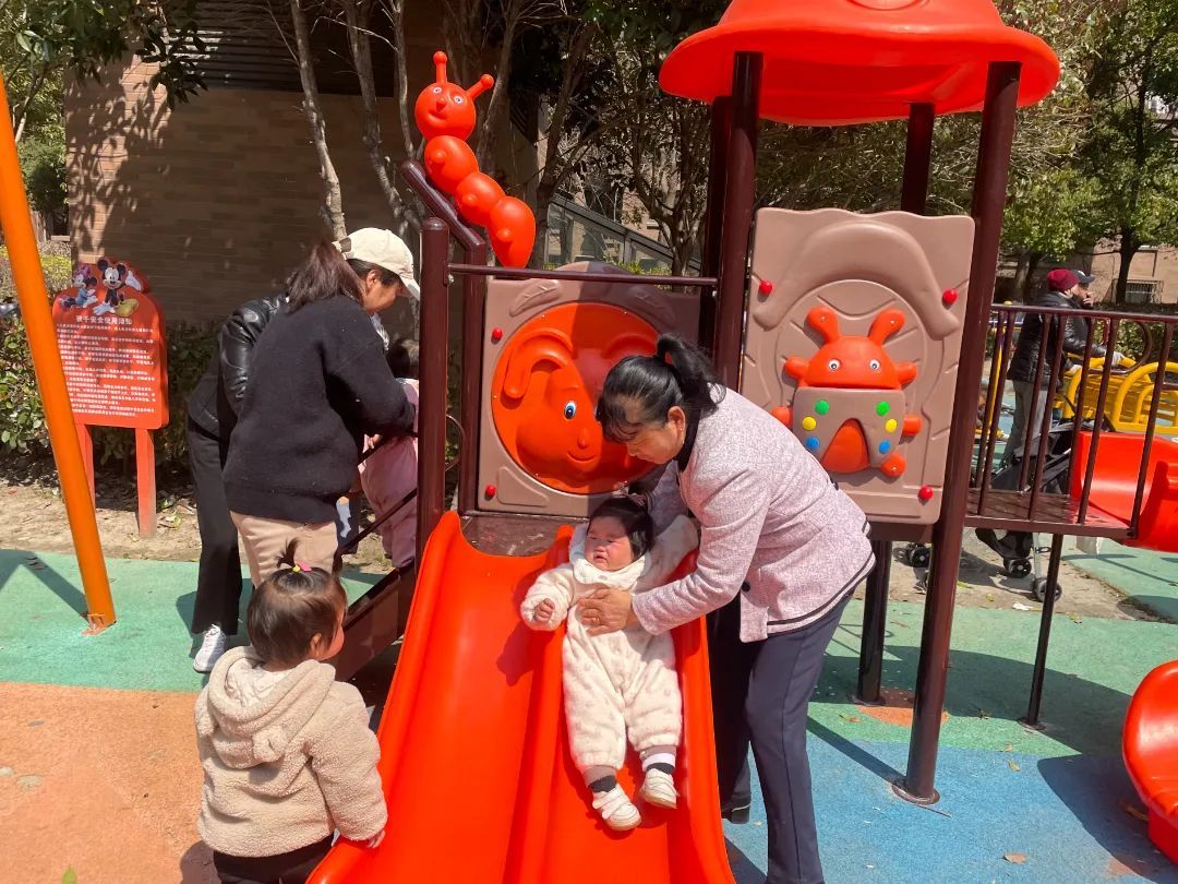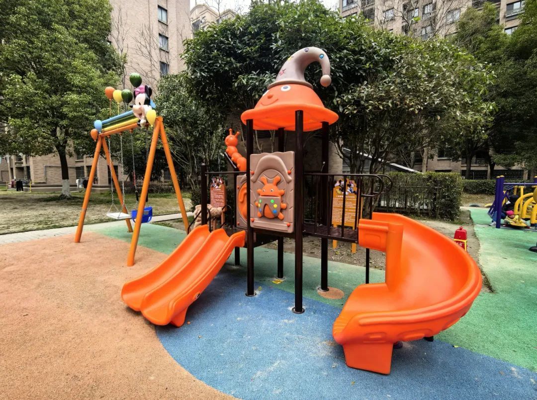 色彩明快的组合滑梯、适龄化秋千设施与安全地垫相映成趣......近日,韵意四村居民区中心花园的“童趣天地”正式启用,成了社区儿童每日打卡的“快乐星球”。