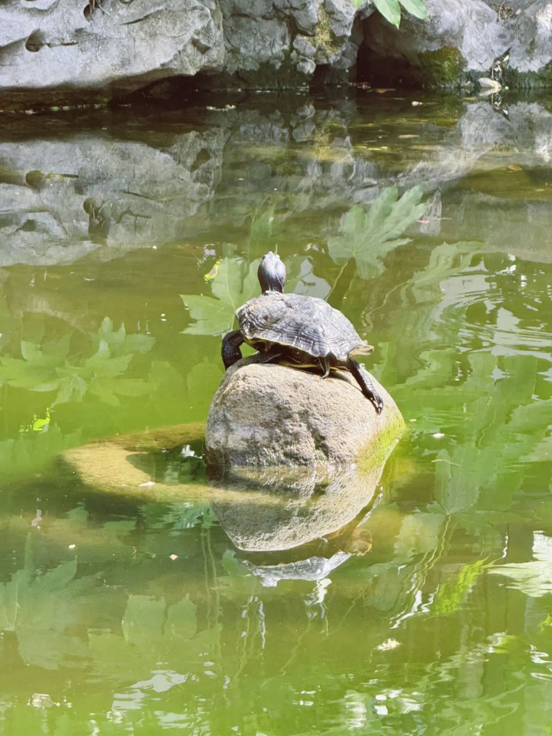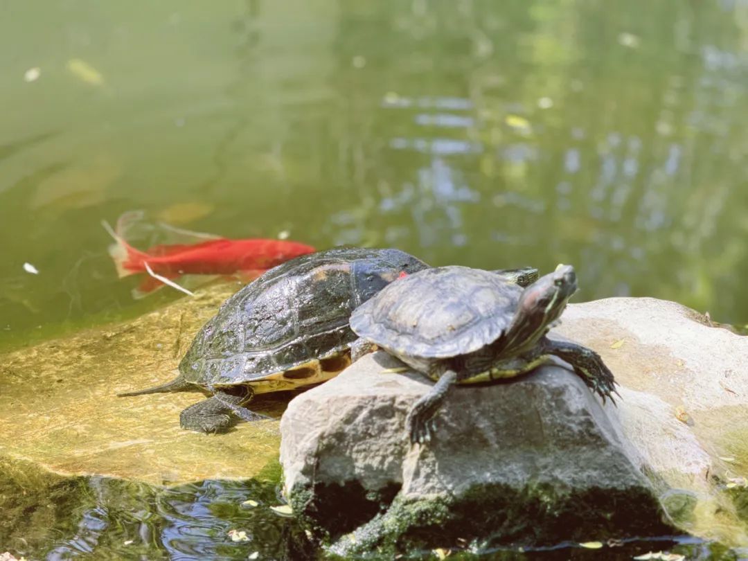 苍翠的绿竹、盛放的花朵、挺拔的松针与绿叶、黄澄澄的柚子、晒太阳的乌龟……这满眼的自然之美,惹得游人不禁驻足观赏。