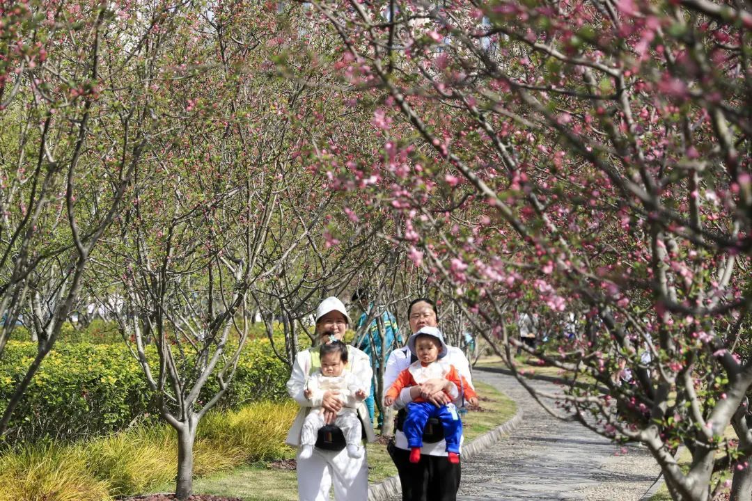 游园现场,虽然大多数海棠花尚含苞待放中,但一点也不妨碍游园人气。70多岁的苏阿姨,今天清晨五点就起床,从外区换乘公交和地铁1个多小时特意赶来:“我每年都来‘海棠文化节报到’,看着花枝从含苞到盛放,就像看见城市在春天里苏醒,对这片区域感情很深厚。”