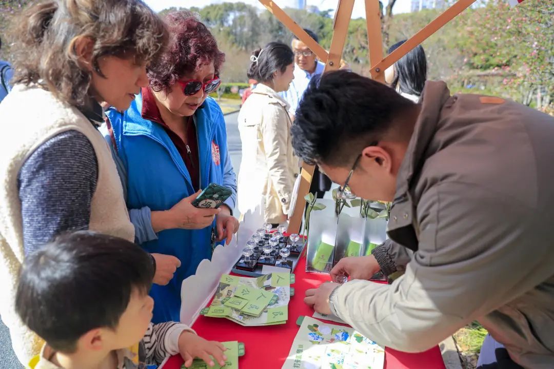 舞台下,以海棠为主题的游园活动精彩纷呈,汉服换装体验、制作植物书签,限量版海棠风车与手机气囊支架等文创周边更成为市民们打卡的新宠。