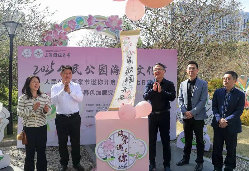 活动还回顾了人民公园自1952年以来的历史积淀,并介绍本届海棠文化节与上海国际花展的联动意义。随着嘉宾共同启动气球放飞仪式,1600余株六大品种海棠正式“就位”,宣告“春色七日游”全面开启。