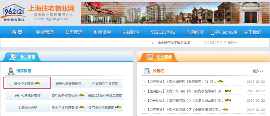打开上海住宅物业网,点击首页“业主服务”→“维修资金查询”,登录并绑定房屋信息后,可在左侧“电子结存单”中查询、下载房屋对应的结存单信息。