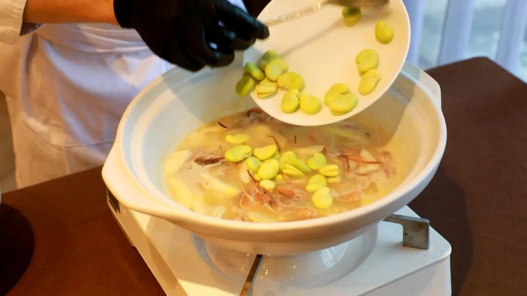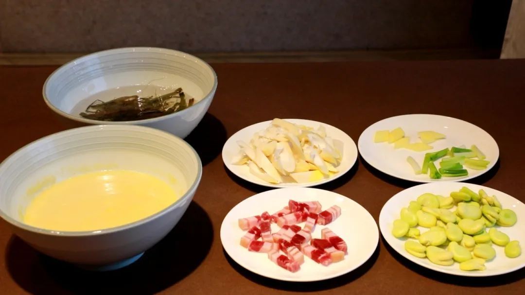 食材:高汤(鸡汤)、春笋、蚕豆瓣、咸肉、河虾