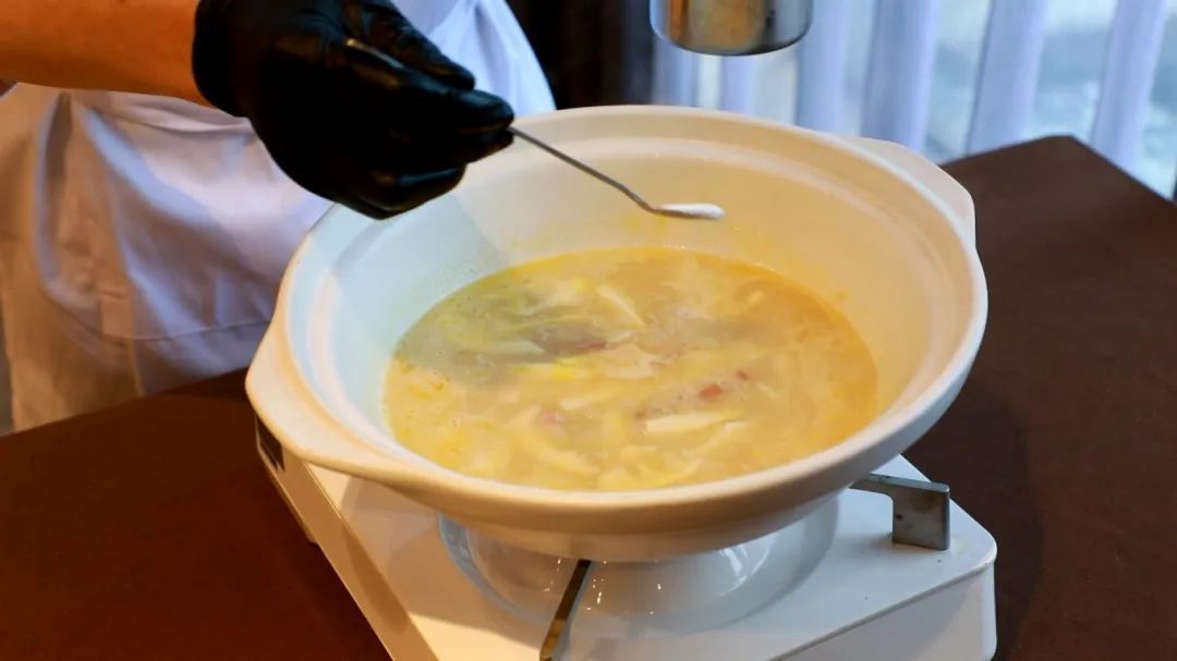 4.翻炒均匀后倒入高汤。