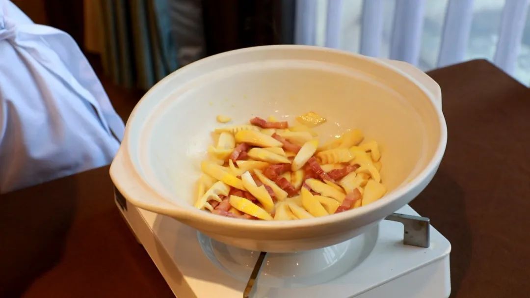 3.翻炒均匀后加入春笋片。