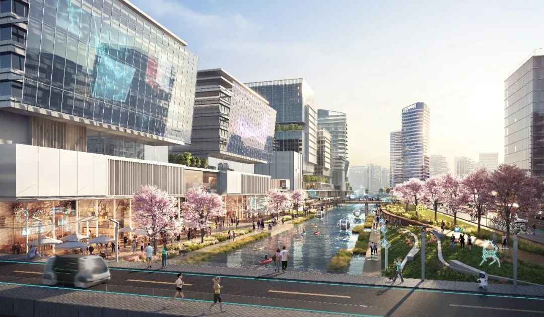 不仅如此,嘉宝智慧湾致力于打造人与自然亲近相融的宜居之地,率先实现“双碳”目标的近零碳社区示范区建设。在嘉宝智慧湾的蓝图中,一条全长约12公里的慢行网络线路将优雅铺展,它不仅彰显了快慢交织的以人为本设计理念,还倡导了绿色出行的生活方式。与此同时,一条便捷的低速无人巴士线路也将穿梭其间,这条线路巧妙融合了健身运动、日常通勤与休闲社交的多重功能,让城市的快节奏生活得以悠然放缓,从而促成人、城、水、绿四者的和谐共生与完美融合。