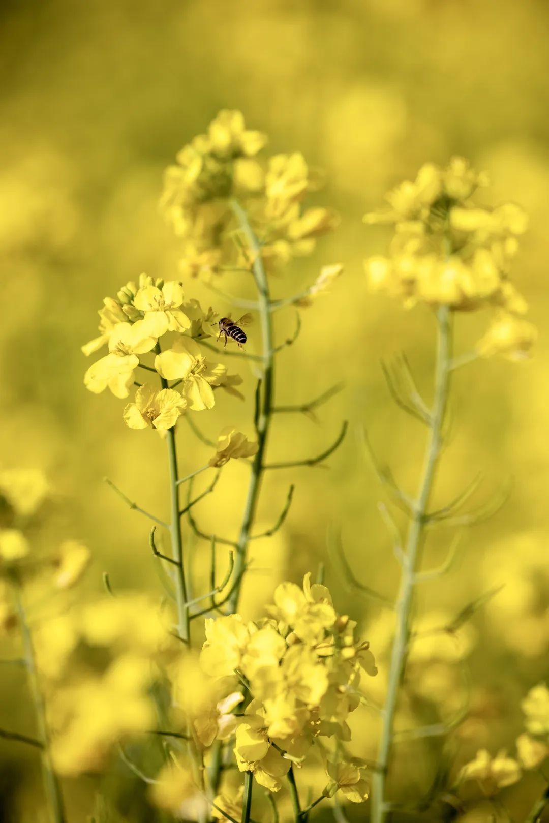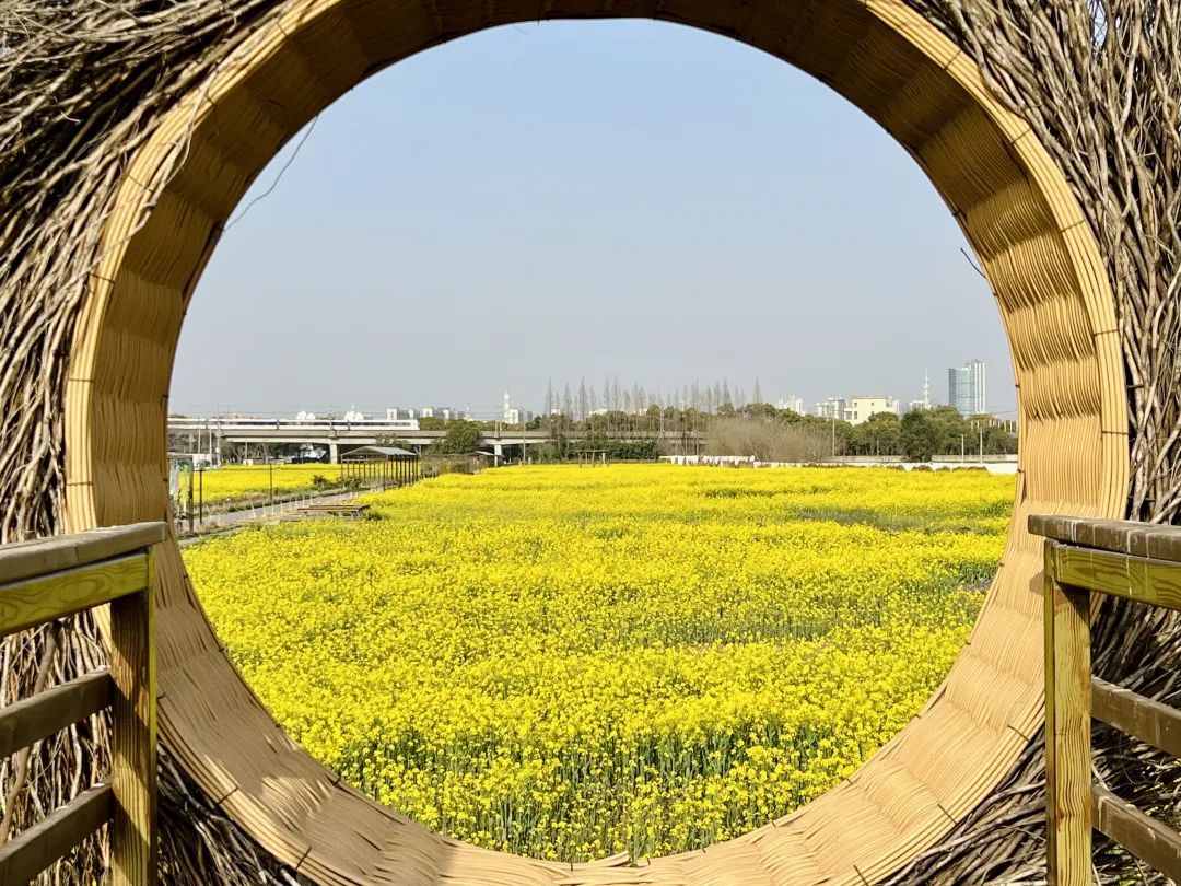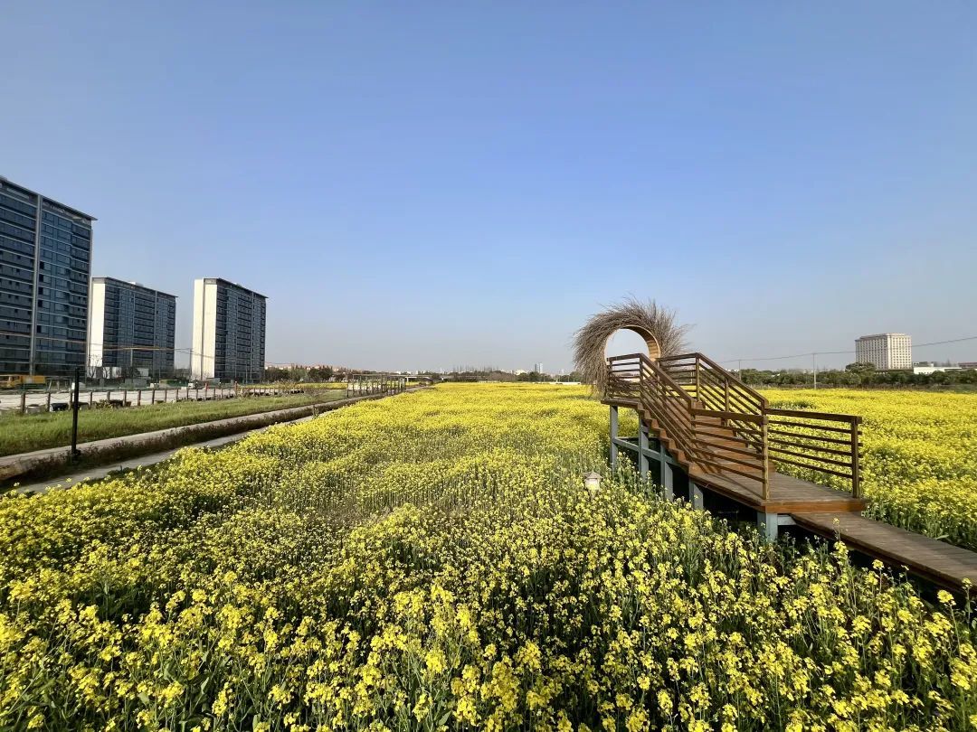 在近沪闵路银春路口,有南北两个片区、百亩油菜花迎风摇曳,涌起一层层金色花浪。春风拂来,一阵阵花香沁人心脾。沿着田间蜿蜒的小路,漫步于花丛中,一群群蜜蜂和蝴蝶嬉戏花蕊间。