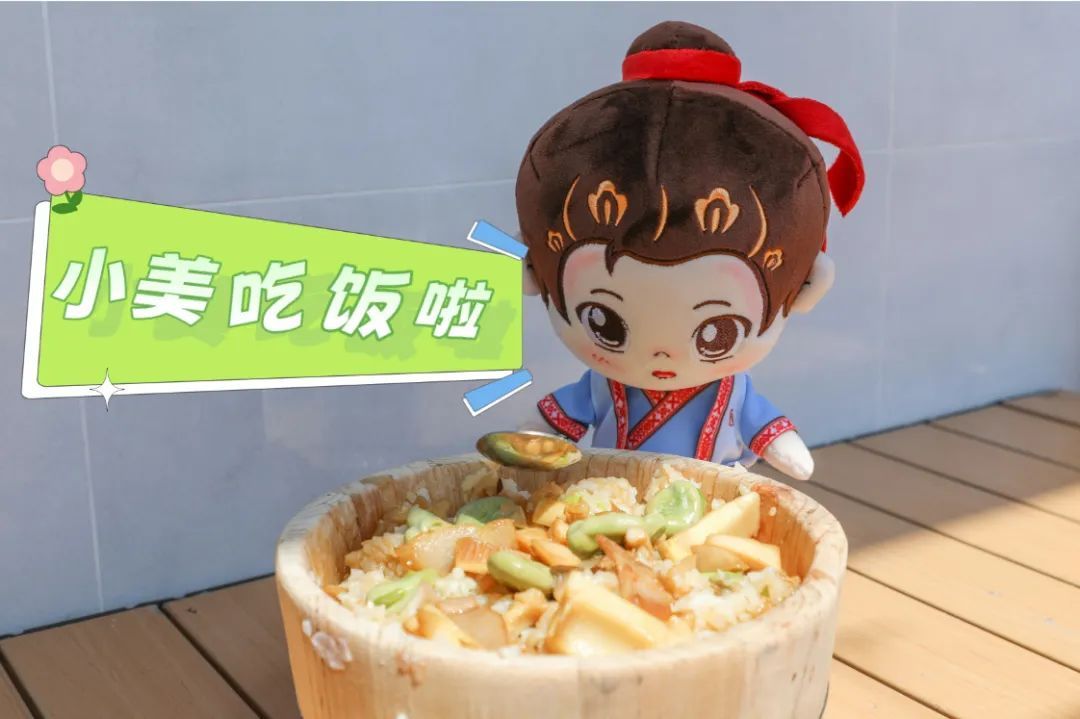 春笋、蚕豆、咸肉、杏鲍菇、大米。