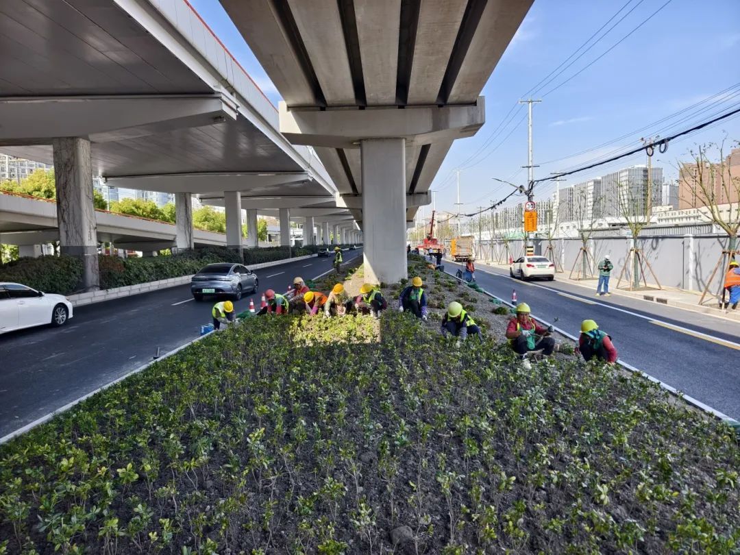 春暖之后,宝山的绿化建设不断推进。在逸仙路沿线,长逸路下匝道下方的绿化也同步跟进,为市民出行带来更好的观感。