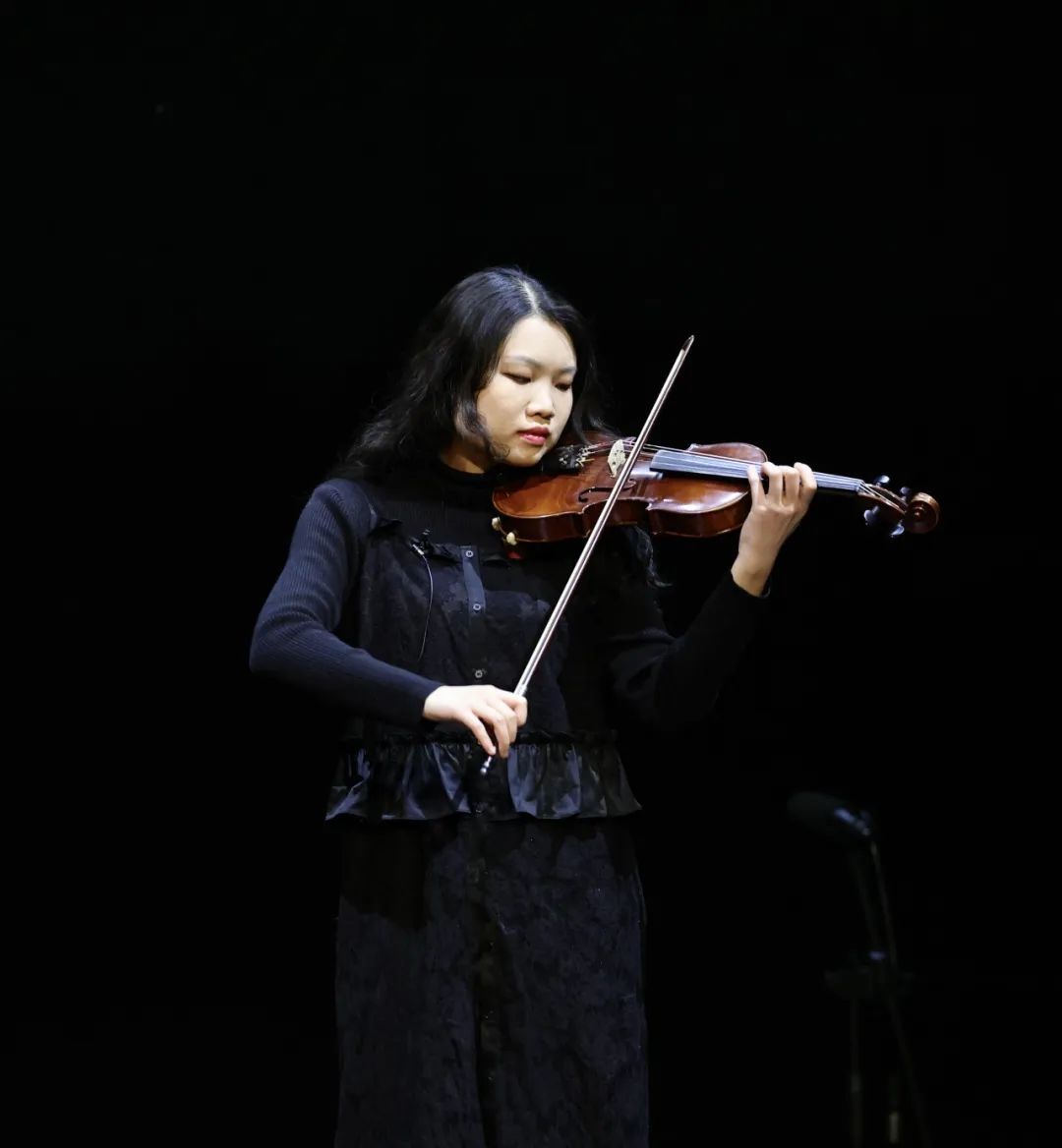 潘久祾是年纪最小的演奏者,5岁的她一登台就赢得了鼓励的掌声。小女孩学琴2年,已能熟练完成“和弦”和“琶音”。妈妈帮她选了节奏快、情感激烈的《抗婚》一段,她拉得有模有样。问她能否理解曲中情意,她有些懵懂,但她知道小提琴演奏家俞丽拿,也知道很多很多年前,俞丽拿就是在这个舞台拉响《梁祝》的。