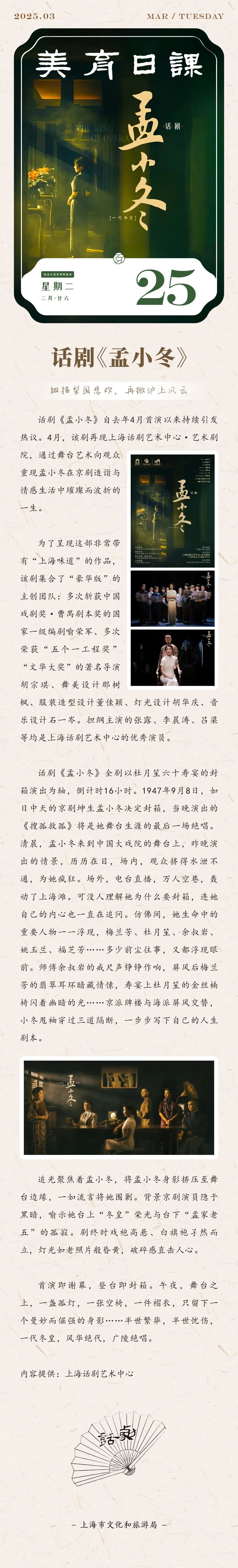美育日课 | 话剧《孟小冬》:细描梨园悲欢,再掀沪上风云