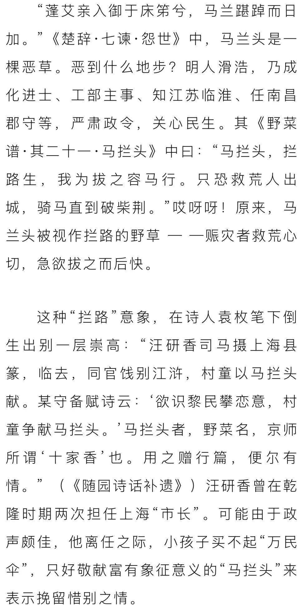 知堂(周作人)在《故乡的野菜》中提到:“那时小孩子们唱道:‘荠菜马兰头,姊姊嫁在后门头。’后来马兰头有乡人拿来进城售卖了,但荠菜还是一种野菜。”听话听音,锣鼓听声,从他的话里,我咂出一丝为荠菜打抱不平的味道。
