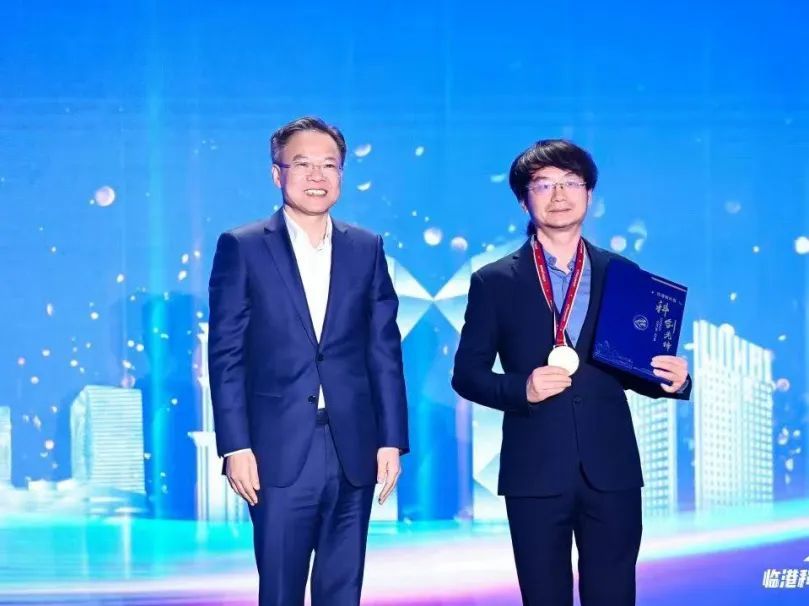 王宇(右)在2024临港科创大会上接受颁奖