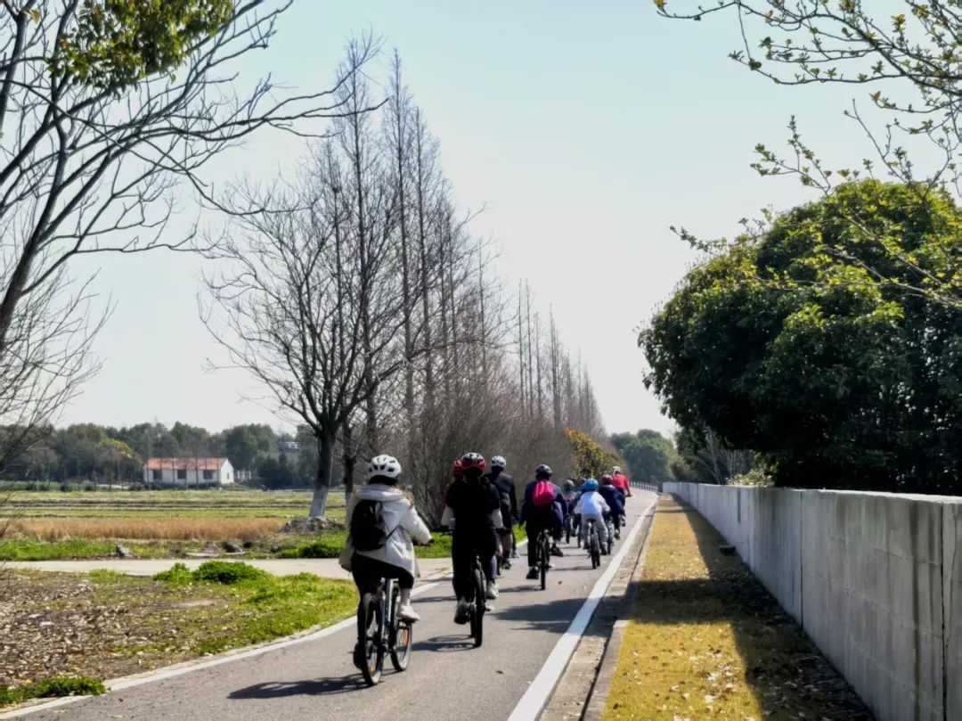 3月23日一早,50余名骑行爱好者组团从新源村出发,沿途经过浦江之首、东夏村有米社区、泖河骑行道、泖岛公路等多个点位。穿梭在乡间道路上,碧树绿草,空气清新,风光秀美。冲在最前面的吴先生是一名资深骑行爱好者,第一次体验乡村骑行,他用“惊艳”来描述,“之前就听骑友说这边很适合骑行,乡村风光美,天气也不冷不热,确实很赞”!