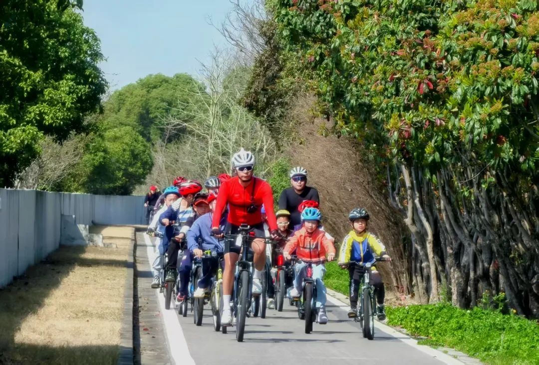 骑行队伍中,除了资深骑行爱好者,还有带着小孩出游的家庭团。市民李先生和妻子带着3岁的女儿参加了由上海浦江之首乡村文化旅游有限公司联合上海谦隶体育发展有限公司共同推出的周末骑行团,从基础装备到骑行线路、用餐补给,都由组织方“包办”。“天气给力,骑行距离也刚刚好,沿途风景也很美,带小孩子出来接触下大自然,挺好的。”李先生说。